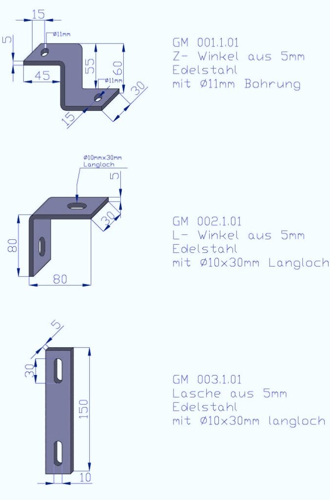 Verbindungselemente Edelstahlelemente zur Verbindung von Grabeinfassung, Grabsteinen und Einlegeplatten. Aus Edelstahlblech gefertigt. Z-Winkel GZ 003.1.01Z-Winkel aus Edelstahlblech 5mmL-Winkel GZ 003.2.01L-Winkel aus Edelstahlblech 5mmLasche GZ 003.3.01Lasche aus Edelstahlblech 5mm Zurück zur Übersicht